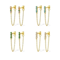 Daidan Earrings Silver Drop Silver 925 Long Chain Link Colorful Bar Zircon Earrings